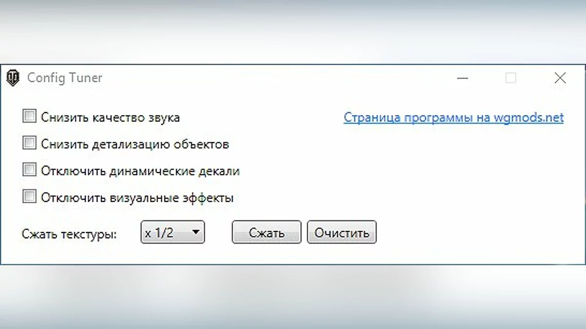 При недостатке частоты кадров геймеру не обязательно снижать все графические настройки. Модификация упрощает небо, отключает туман, солнечные блики, грязь и отличительные отметки. Пользователи могут выбрать цвет неба — чёрное, синее или сумеречное. Эти небольшие изменения позволят получить прирост частоты кадров.