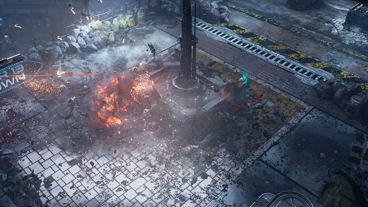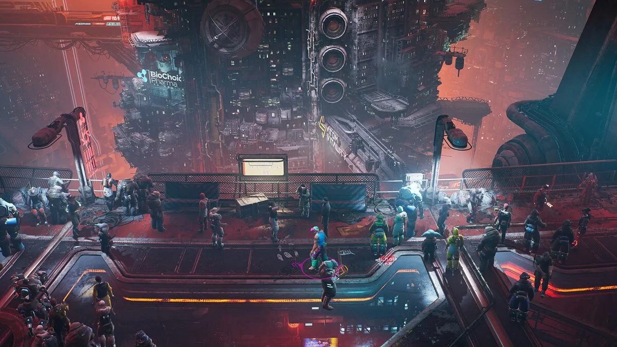 В мире The Ascent не требовалось много времени, чтобы ощутить слоган «High tech, low life». Люди и инопланетяне носили вычурные аугментации, стреляли из технологичных пушек, по улицам бродили здоровенные роботы, а над головами летали тачки. Несмотря на технологичность, от улиц разило бедностью, по подворотням валялись трупы несчастных, а большинство жителей стали рабами корпораций.