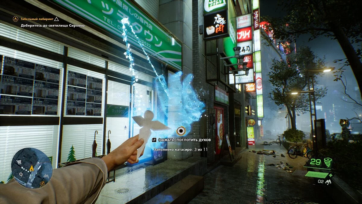 К тому же ограничений в Ghostwire: Tokyo ещё больше, чем в других открытых мирах. Большая часть карты окутана туманом, в который нельзя зайти. Чтобы открыть местность, нужно очищать ритуальные врата (читай «захватывать вышки»). Ради доступа в некоторые местности, нужно проникать в святилища, по которым бродят толпы врагов, — это напоминает типичную зачистку аванпостов.