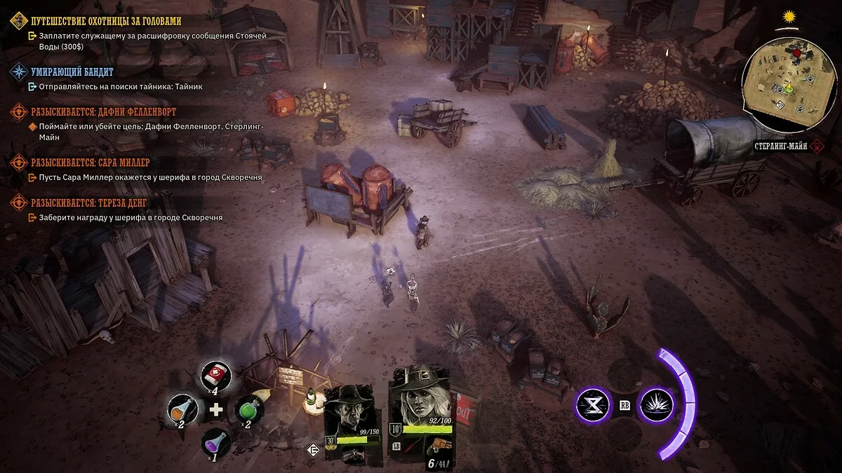 В Weird West большая глобальная карта, по которой раскидано множество точек интереса: города, пещеры, бандитские лагеря, поместья — чего там только нет. В начале прохождения изучать их любопытно. Повсюду полно деталей, лута, секретов и прочего добра, да и нарисовано всё красиво.