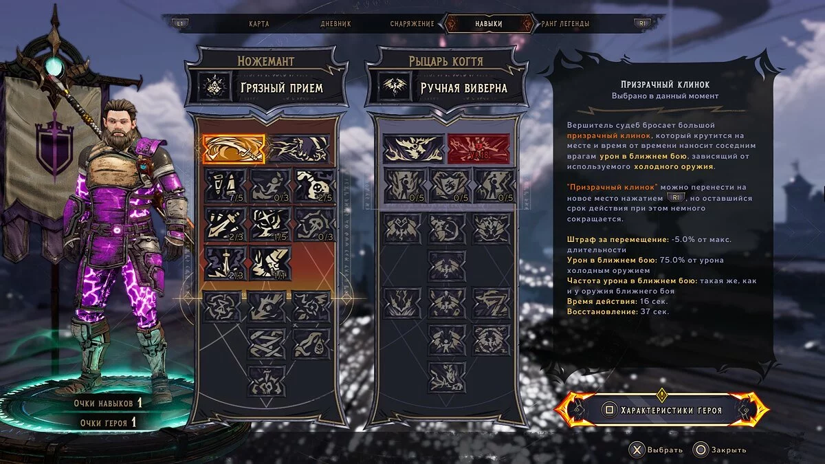 Всего в игре шесть классов, при этом развивать можно сразу два — доступ ко второму откроется по мере прохождения. К примеру, герой может одновременно прокачивать классы «Дитя могилы» и «Ножемант».