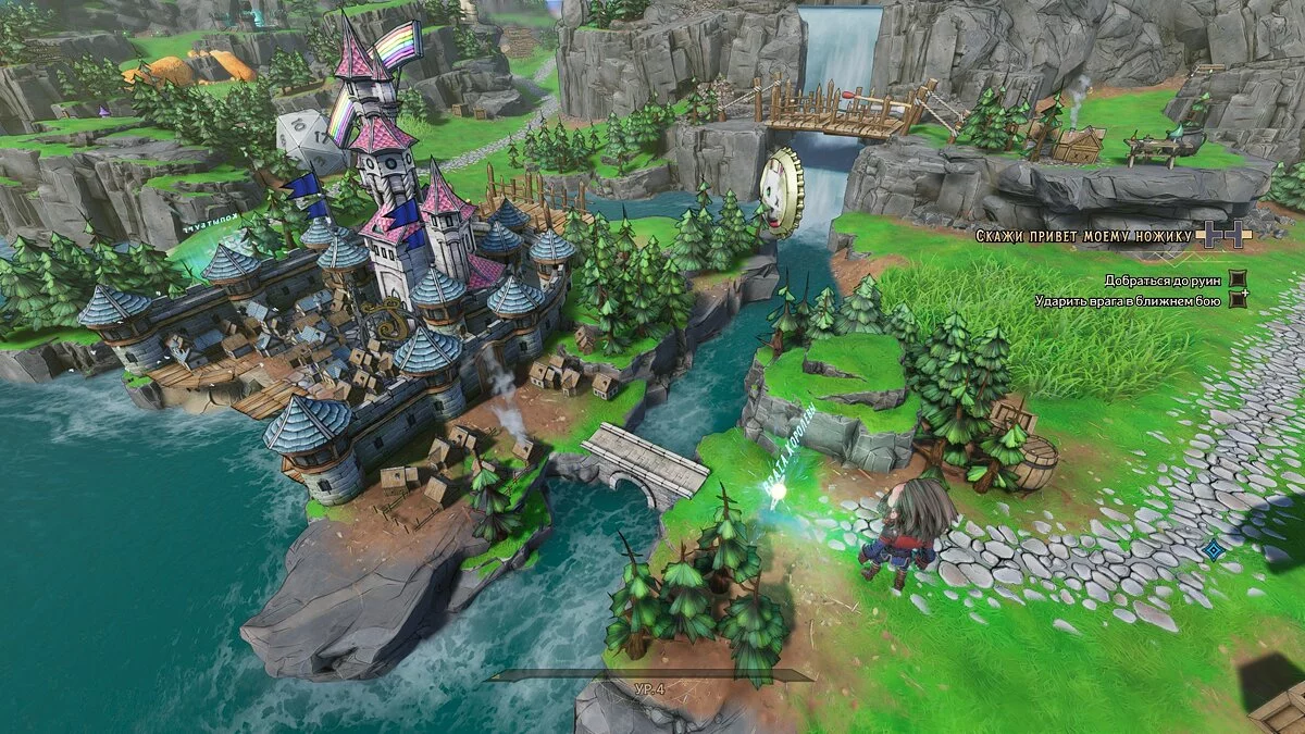 Если говорить о качестве текстур, освещении и прочих технических моментах, то назвать Wonderlands технологичным проектом не выйдет. Зато с дизайном всё хорошо: мир выглядит симпатичным и проработанным — разве что повторяющихся ассетов много.