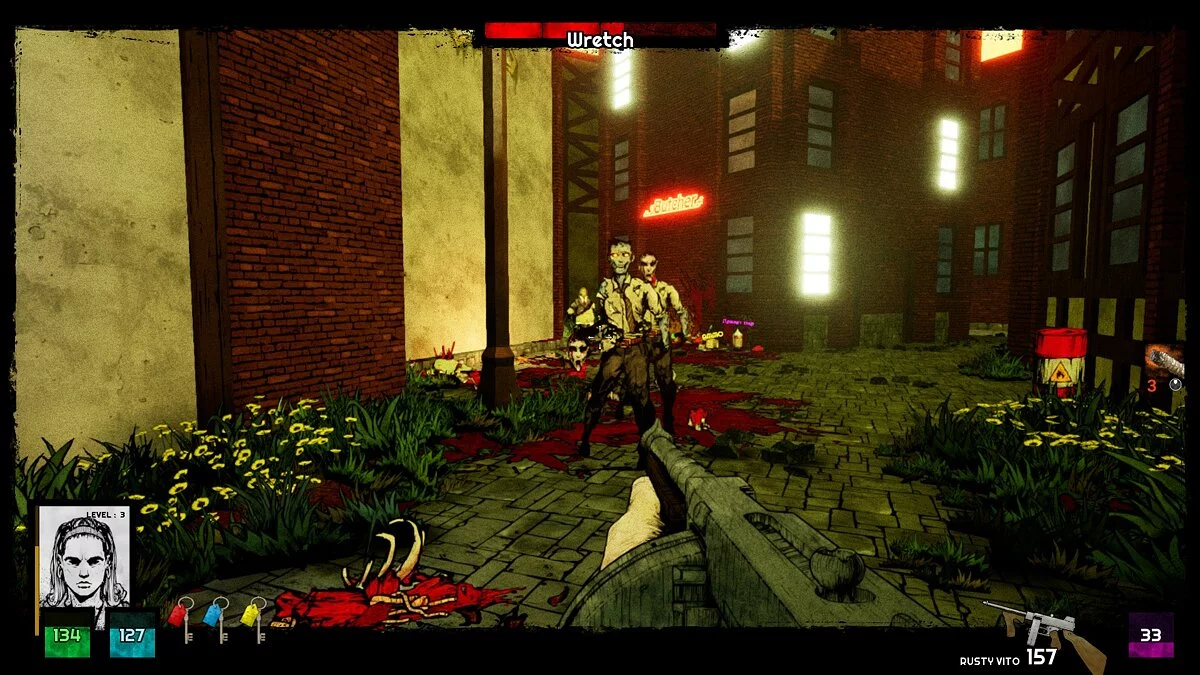 Шутерная механика в Forgive Me Father следует традициям. Герой начинает путь с кинжалом и пистолетом — этого набора достаточно, чтобы разобраться со слабенькими врагами. Хилые обращённые неторопливо лезут под выстрел и охотно умирают с пары попаданий.