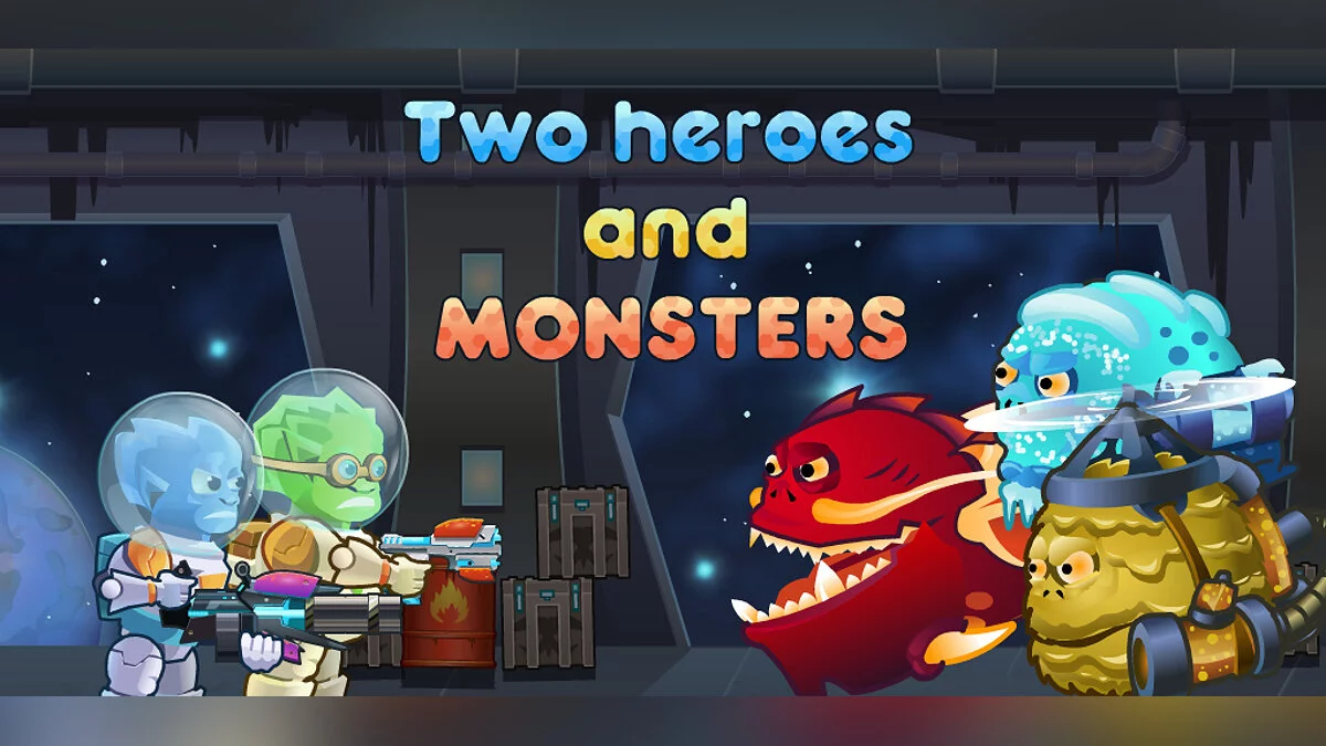 Two Heroes and Monsters — бесплатный проект с мультяшной графикой, в котором игрокам предстоит в роли членов космического корабля защищаться от полчищ монстров. Каждый последующий раунд (монстры нападают волнами) становится только тяжелее, но в противовес этому в игре предусмотрены большой арсенал оружия, строительство баррикад и прокачка персонажа.