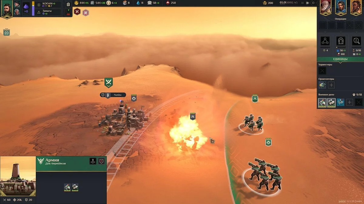 Для победы нужно собрать армию, возвести множество полезных построек, выстроить экономику, научиться обеспечивать Дом и, конечно же, добыть много Пряностей. Увы, начинает фракция на скромном клочке земли, и всё самое ценное лежит за его пределами.