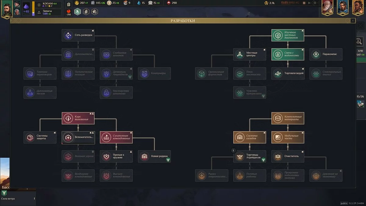 Параметров, за которыми нужно пристально следить, необычайно много. Без притока кадров не получится нанять войска. Без запасов воды армия погибнет, не добравшись до вражеских владений. Без влияния не удастся продвигать выгодные законопроекты. Без основной валюты солари экономика тут же рухнет. А ведь есть ещё разведданные, очки командования, гегемония и множество других забот.