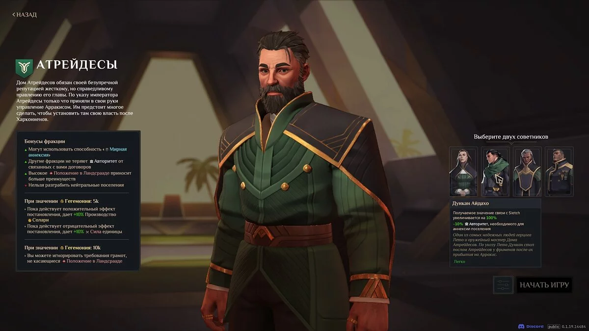 Помимо этого, конкурентам комфортнее заключать договоры именно с Атрейдесами, ведь в случае сделки они не теряют очки авторитета. Плюс благородная фракция получает больше преимуществ при высоком положении в Ландсрааде, ассамблее Великих Домов Империи. Есть и минус: Атрейдесы не будут грабить нейтральные поселения. Это лишь часть фишек фракции.
