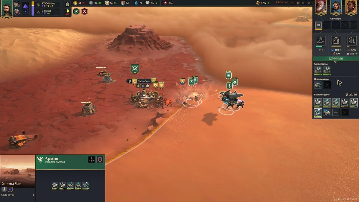Впрочем, мелочи всё же имеют значение. Быстро оттяпать территорию с запасами специй путём мирной аннексии приятно. Пока войска других фракций будут идти до нужного места, Атрейдесы успеют взять территорию под контроль. Однако хотелось бы большего.