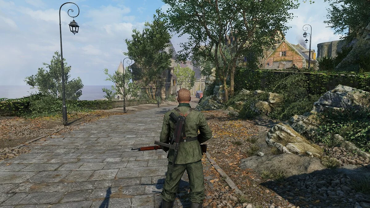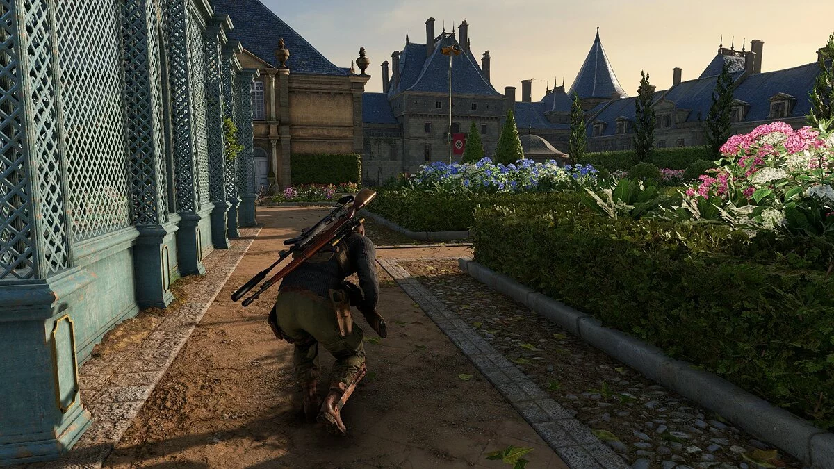 Выглядит Sniper Elite 5 шикарно. Во многом это заслуга левелдизайнеров, которые нарисовали изумительные уровни. В каком бы уголке Франции ни оказался снайпер, разглядывать окружение приятно: густые леса, просторные поля, европейские города со множеством атмосферных улочек, многоуровневые дворцы — подобное разнообразие впечатляет.