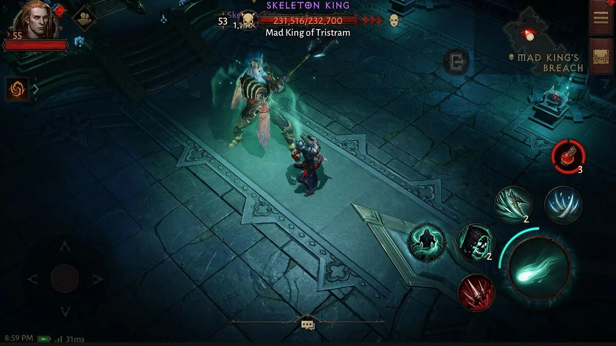 Геймплейно Diablo Immortal проста. Поначалу у героя есть лишь стандартный удар, но уже спустя пару минут авторы подкинут пару новых способностей. Перки продолжат открываться по мере повышения уровня — вплоть до 50 левела. Навыков не особо много: два основных и 12 дополнительных — однако из подобного набора всё же удастся собрать несколько интересных билдов.