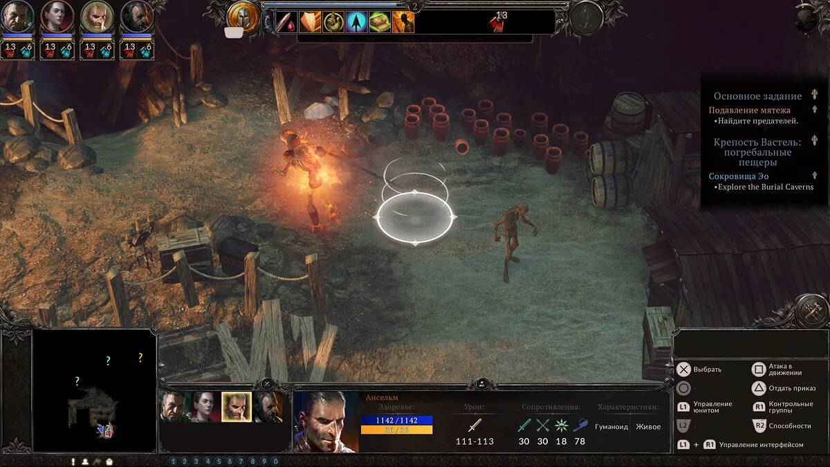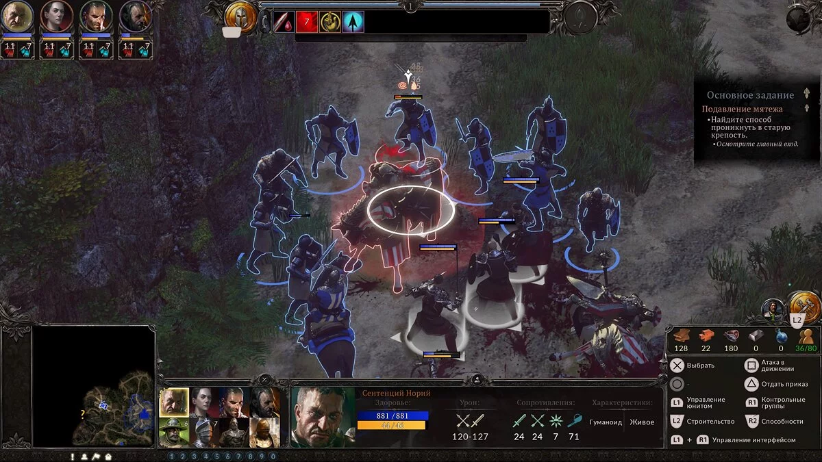 Управление на консоли на удивление приятное. DualSence не заменит мышь, однако его возможностей достаточно, чтобы прохождение было комфортным. Единственная проблема связана с перемещением камеры: если мышка позволяет кликнуть по мини-карте и сразу же взглянуть на базу, на контроллере приходится долго двигать стик к нужному месту.