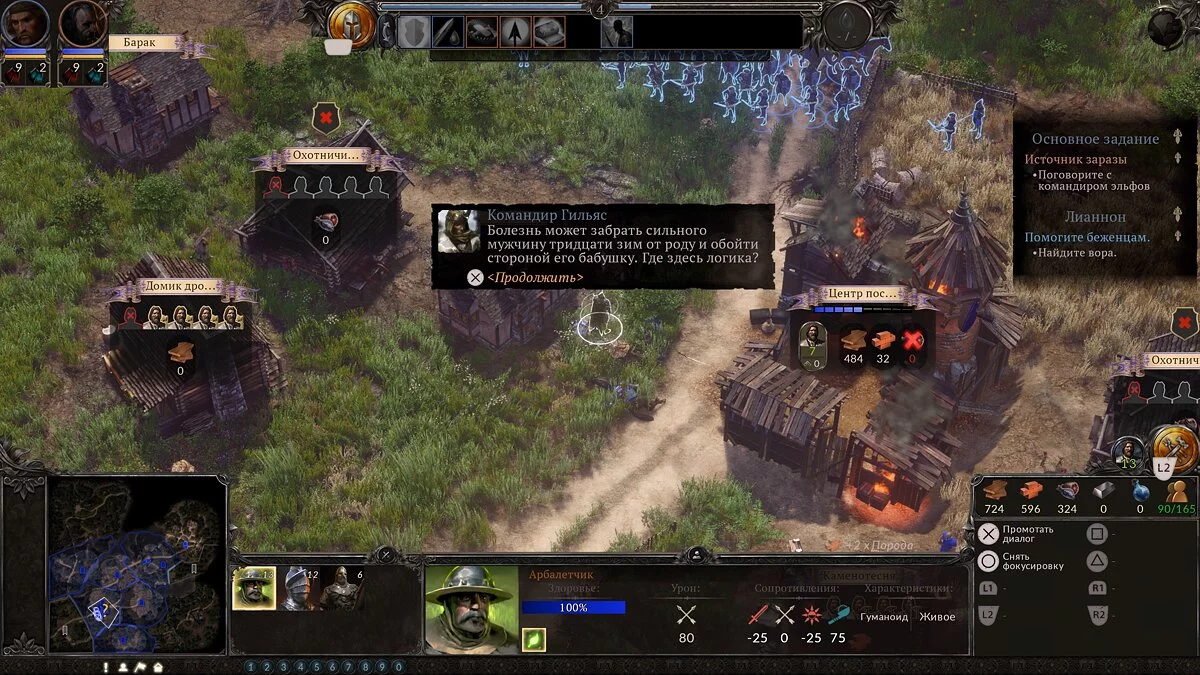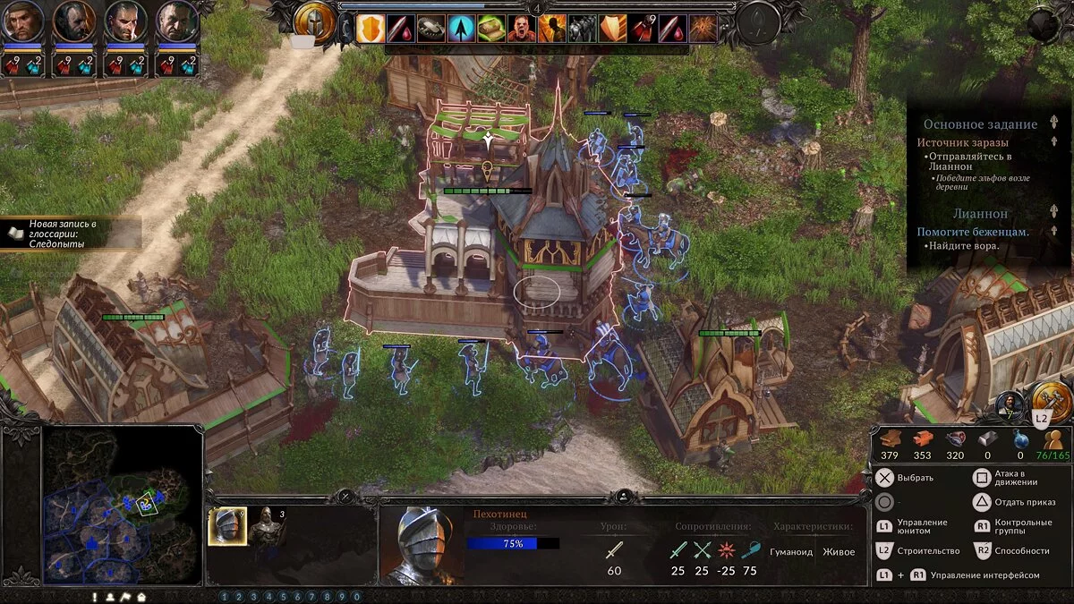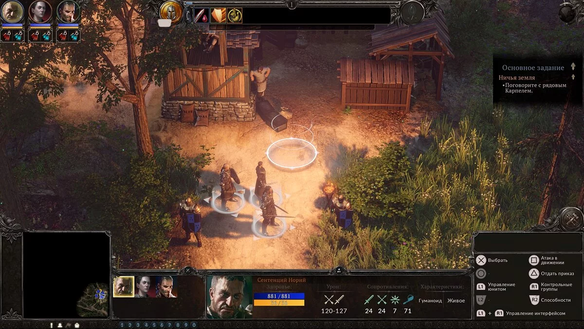 Обычно компания героев залетает на карту и спешит к месту задания. К примеру, им может понадобиться дойти до заражённой деревни и выяснить, что там происходит. Идём по локации, сражаемся с волками и разбойниками, выполняем побочные квесты, находим в сундуках улучшенную экипировку, прокачиваем характеристики и открываем новые навыки. Однако на нужном месте героев может повстречать вражеская армия — чтобы одолеть её, придётся собрать свою.