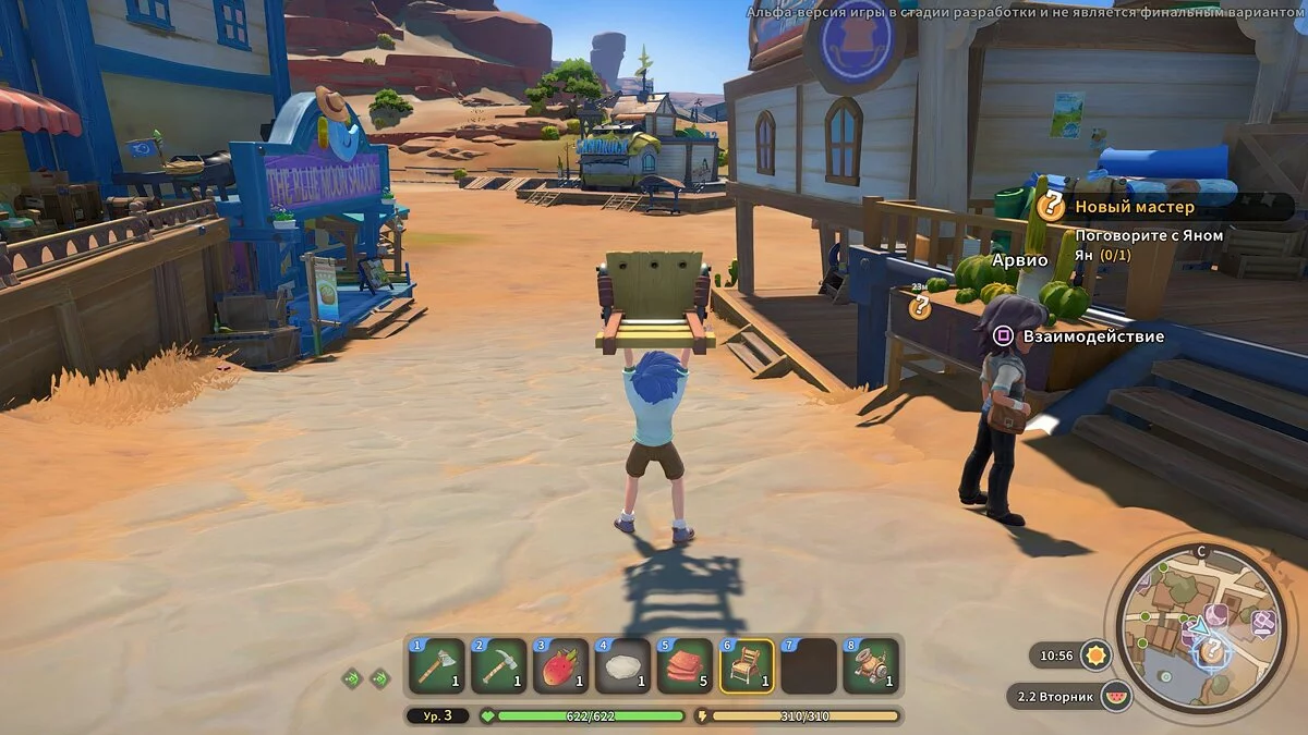 My Time at Sandrock — не самая типичная выживалка, однако базовые механики всё же напоминают классические проекты вроде популярной Valheim или хитовой The Forest. Герой начинает путь, не имея в рюкзаке ни кирки, ни топора, а его участок больше походит на пустошь, чем на мастерскую. Впрочем, пройдёт немного времени, и всё изменится.