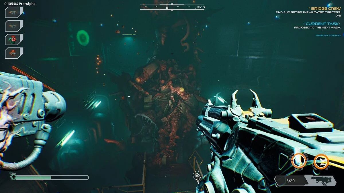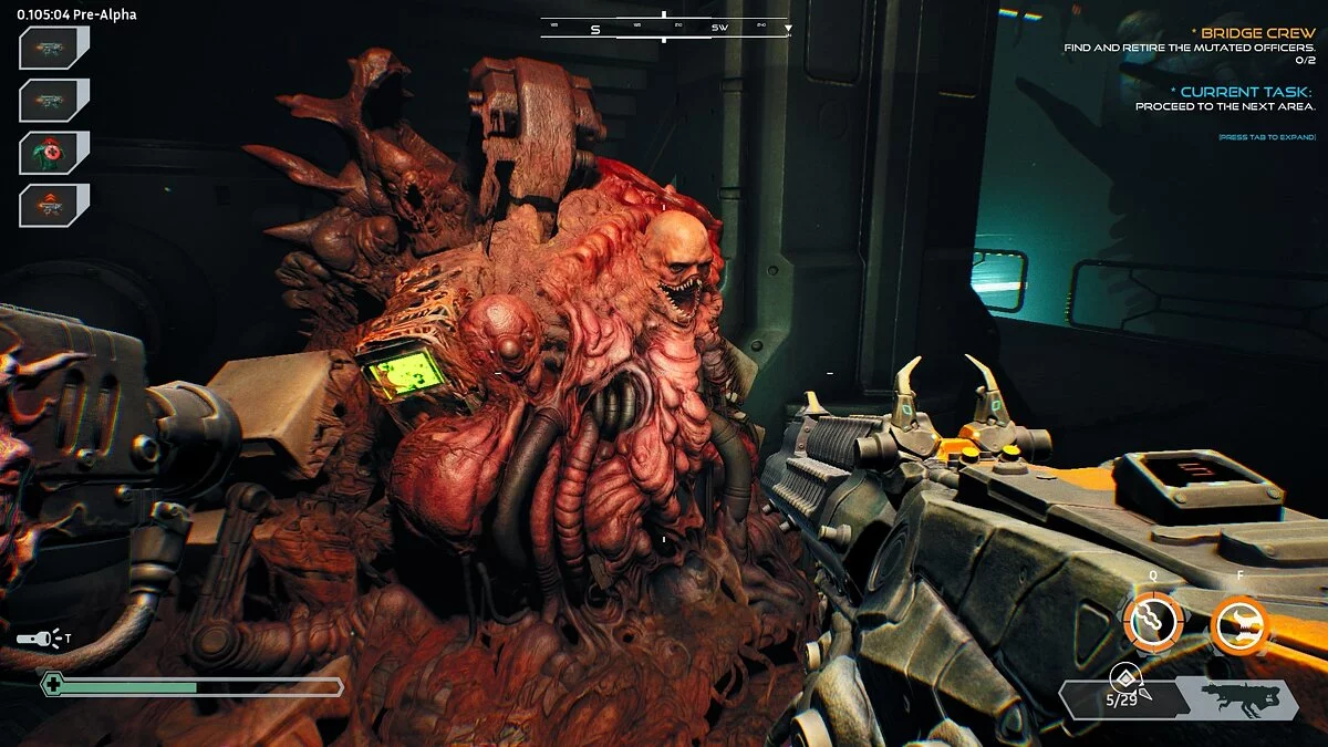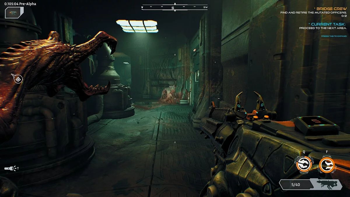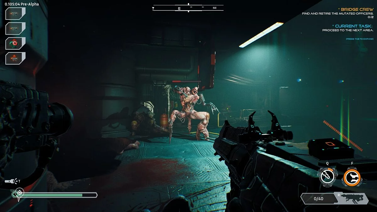 Ripout с первых же секунд впечатляет атмосферой. Забег начинается со стыковочной зоны — там видны следы боя, по земле раскиданы тела, стены заросли ужасным мясом, а звуки сводят с ума. Что шумит впереди: заклинившая дверь или монстр? А вот за спиной что-то упало: отвалился старый вентиляционный люк, или нечто вот-вот набросится с тыла?