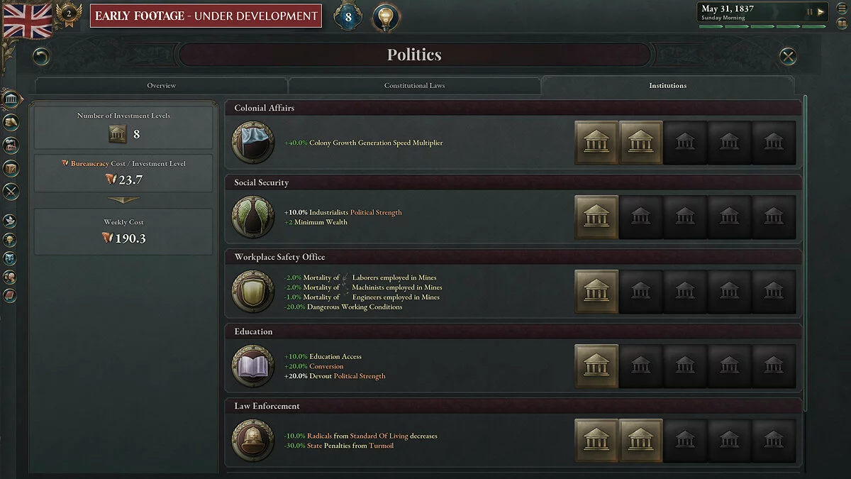 Victoria — культовая серия стратегий, где геймеры управляют государством, строят отношения с соседями и воюют. Victoria 3 позволит выбрать одну из десятка стран и управлять ею с 1836 по 1936 годы. Хватит ли этого времени, чтобы построить идеальное общество? Узнаем в 2022 году.