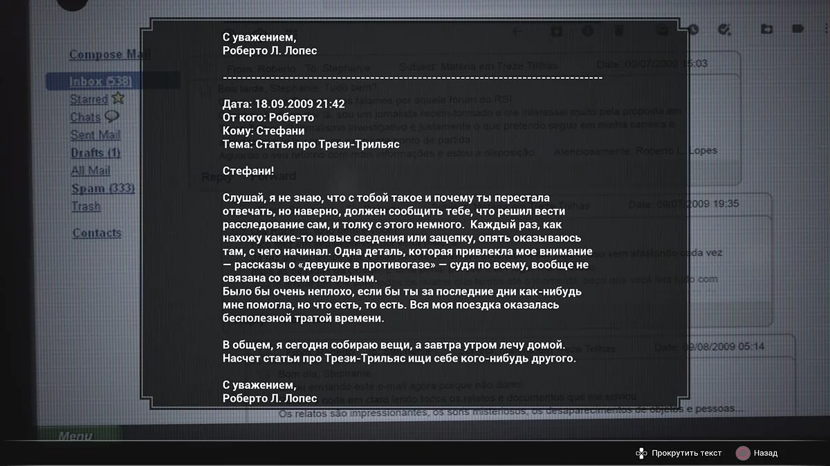 В целом, история вышла достойной. Сценаристы умело интригуют, раскрывают прошлое жуткого города и рассказывают любопытные истории о призраке и монстрах. Интереснее всего читать записи и слушать аудиокассеты, которые оставили выжившие. Бедолаги до последнего пытались спастись и охотно описывали свои беды — от некоторых рассказов по коже бегут мурашки.