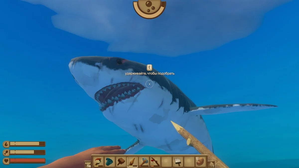 Акула будет кошмарить выживальщика на протяжении всей игры — она вообще не позволяет расслабиться. Стоит потерять концентрацию или не рассчитать время, как тварь тут же цапнет бедолагу. Ни в одной другой игре зубастый хищник не был таким опасным.