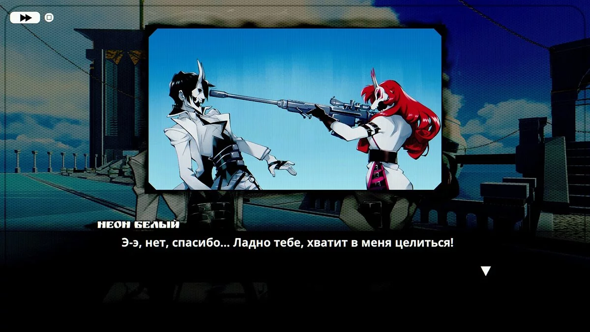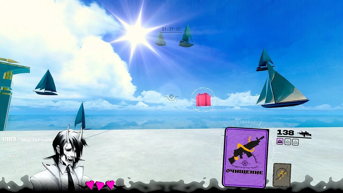 В итоге сюжет Neon White оставляет приятные впечатления. От него не стоит ждать откровений, да и некоторые сюжетные повороты легко предсказать — однако повествование всё равно увлекает.