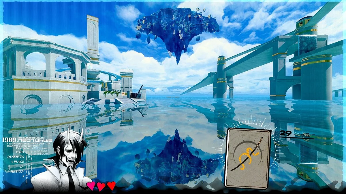Геймплей Neon White разбит на две фундаментальные механики. Часть времени герою предстоит бегать по изобретательным уровням и мочить демонов, а часть — бродить по Раю и общаться с ангелами и неонами. Эти процессы занимают примерно одинаковое количество времени.
