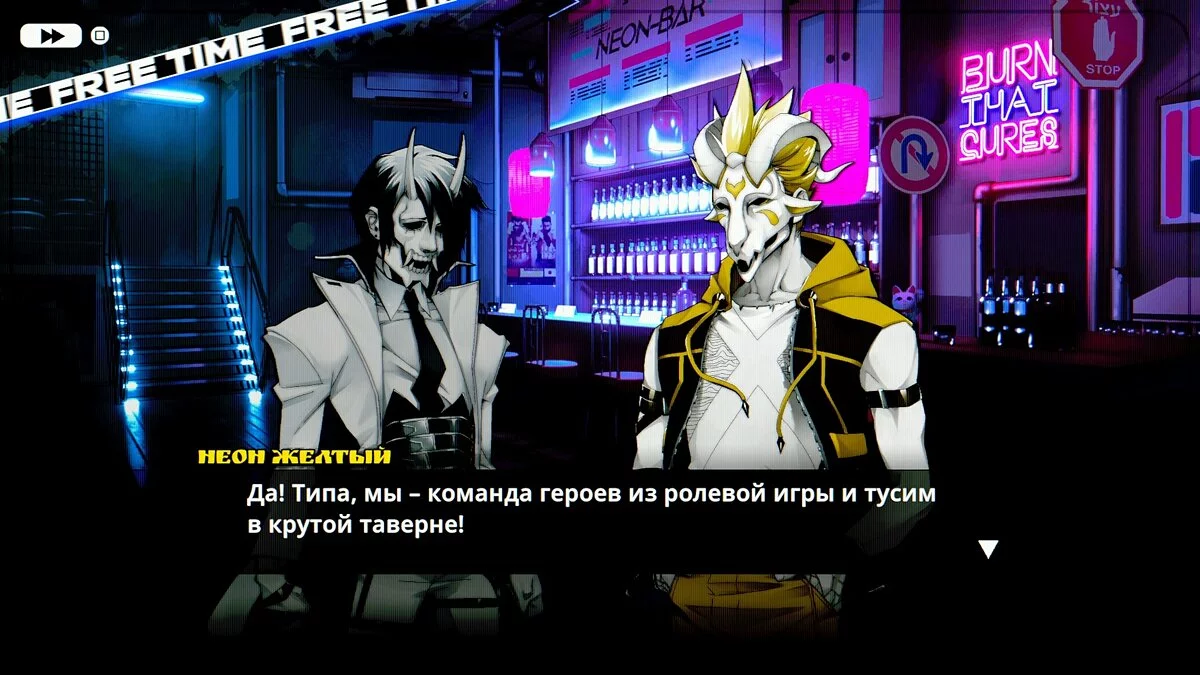 Шарм Красной чувствуется сквозь экран, Лиловая удивляет безумием, а Жёлтый шокирует тупостью. Учитывая, что значительная часть игры держится на социальной механике, проработанные персонажи — это важно. Неонов и правда хочется узнать получше.