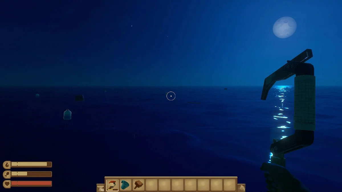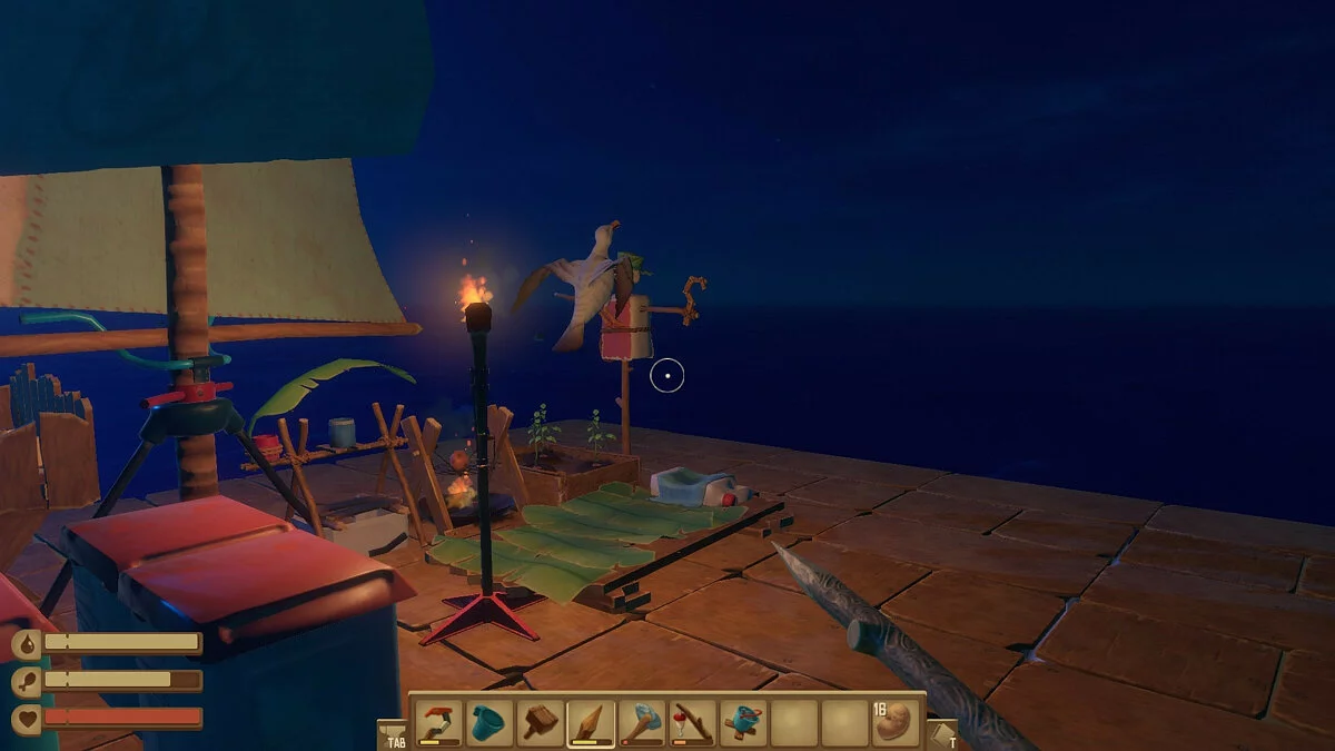 Впрочем, традиционных проблем у героев тоже хватает. Рядом с плотом плавает акула-людоед, ресурсов для крафта постоянно не хватает, а запасы еды иссякают — восполнить их можно, например, рыбалкой или созданием огорода.