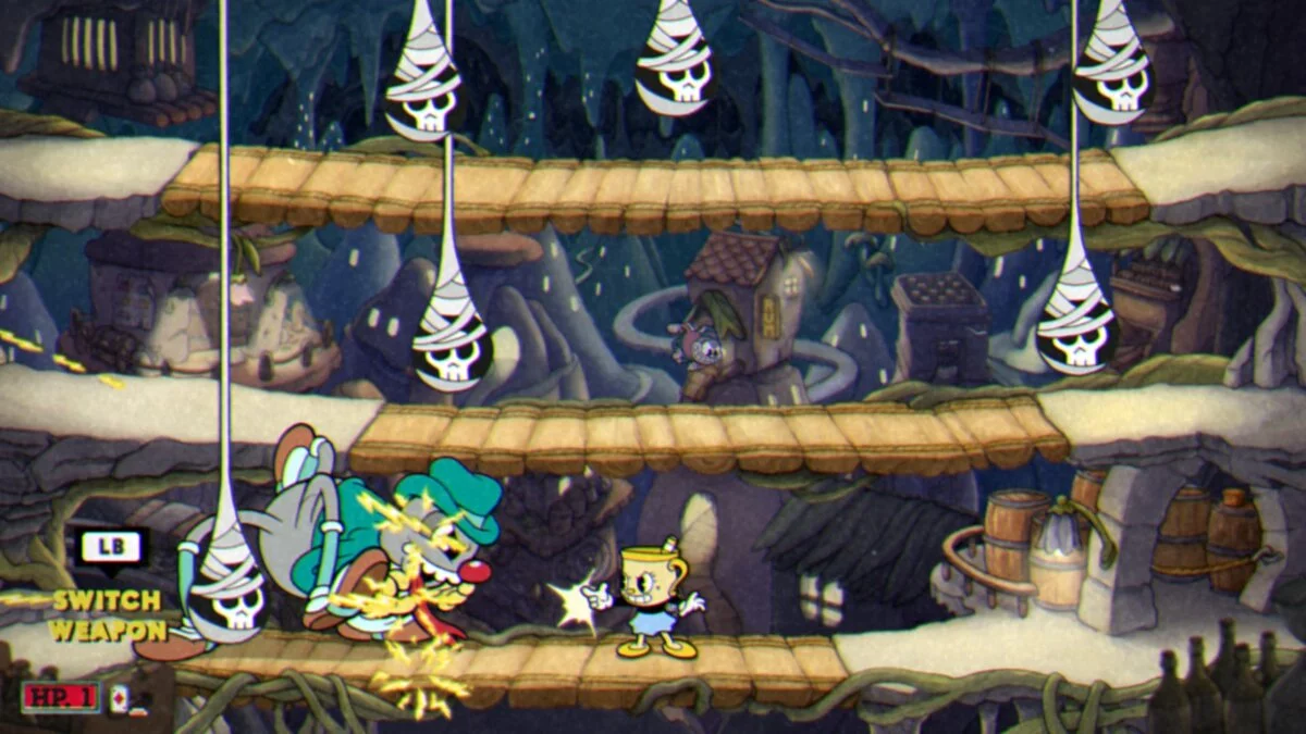 Отличие от шикарной Elden Ring лишь в том, что у боссов нет шкалы здоровья. Никогда не знаешь, сколько выстрелов не хватает до победы — прогресс показывают лишь после поражений. Плюс противники в Cuphead всё-таки более изобретательны, чем в проектах Миядзаки (Hidetaka Miyazaki). Их меньше, но каждый проработан до мелочей.