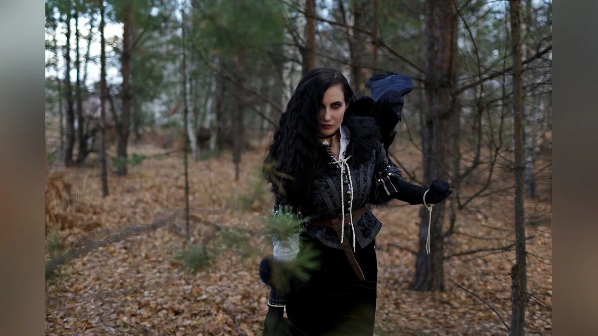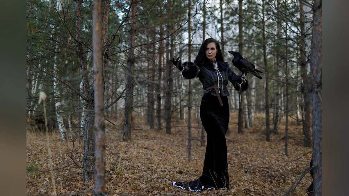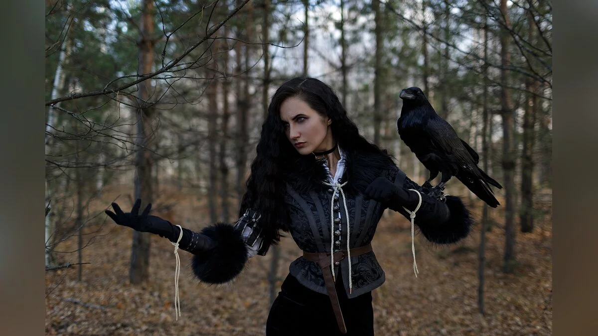 Saint Hysteria неоднократно возвращалась к образу Йен. Девушка делала косплей на черноволосую чародейку в каноничном костюме и нижнем белье, обыгрывала гвинт с Геральтом и демонстрировала её взаимоотношения с Цири. А этот фотосет запоминается живым вороном в кадре.