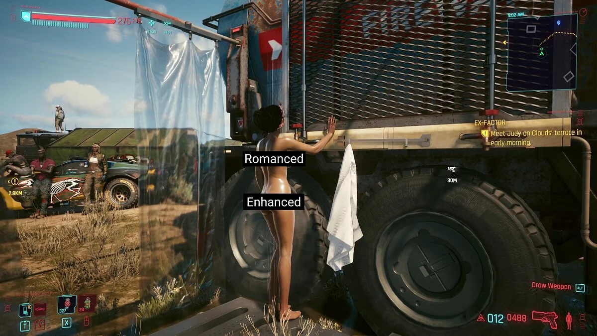 Модификация, которая улучшает работоспособность игры версии 2.0 и дополнения Phantom Liberty. Она делает картинку более чёткой, убирает эффекты размытия и тумана, а также увеличивает количество FPS (кадров в секунду).
