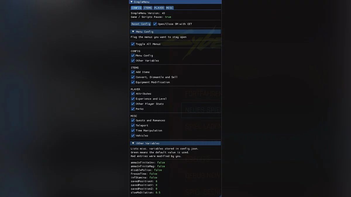 Simple Menu. An In-Game UI including Hotkeys — читы и управление параметрами игры