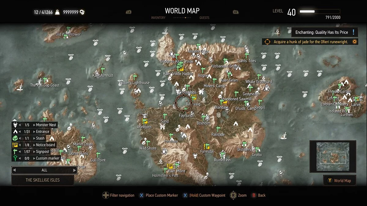 Модификация рекомендована тем, кто проходил третьего «Ведьмака» большое количество раз. Благодаря моду карта мира со всеми значками будет открыта с самого начала.