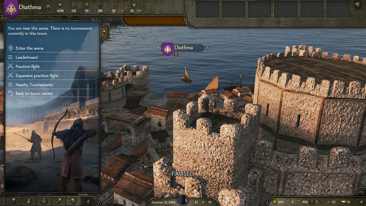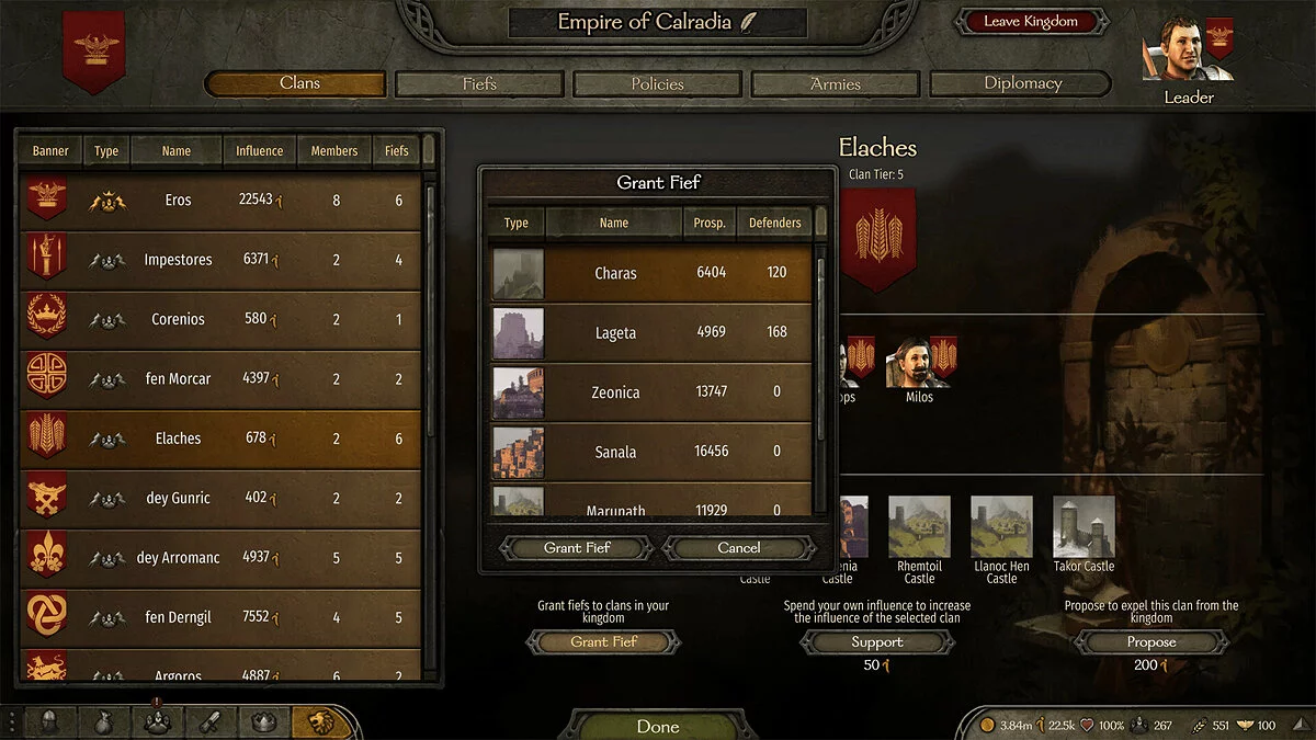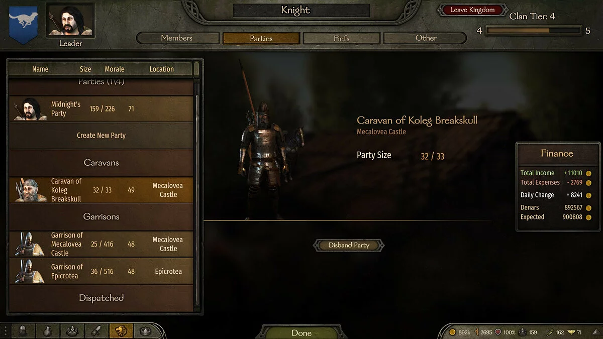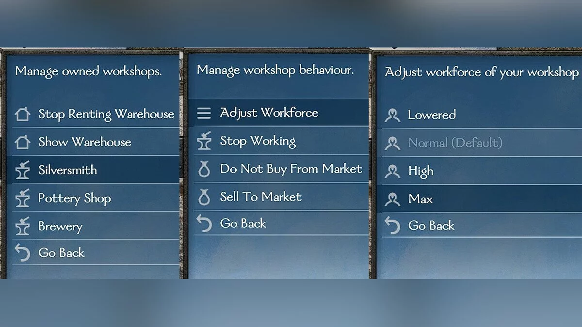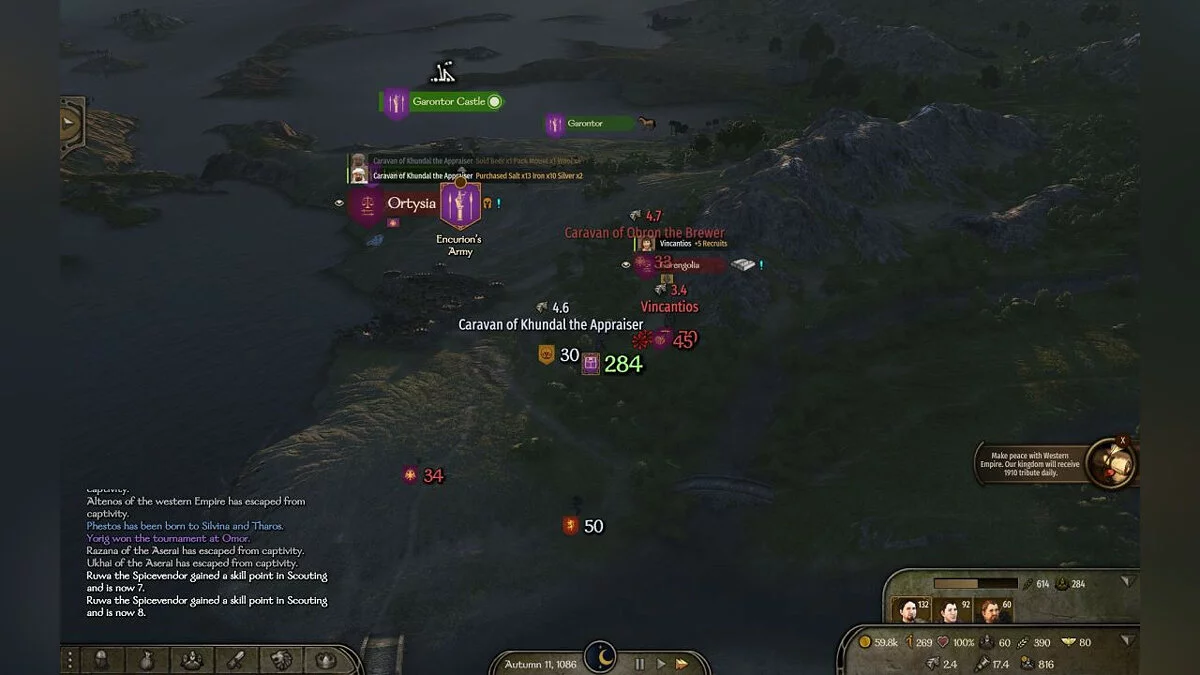 Теперь можно полноценно контролировать свои территории и расширять армию: автоматически нанимать добровольцев из ближайших поселений, тренировать гарнизон замка, создавать гвардейские отряды, которые будут патрулировать ваши территории, и следить за развитием поселений с помощью различных меню.