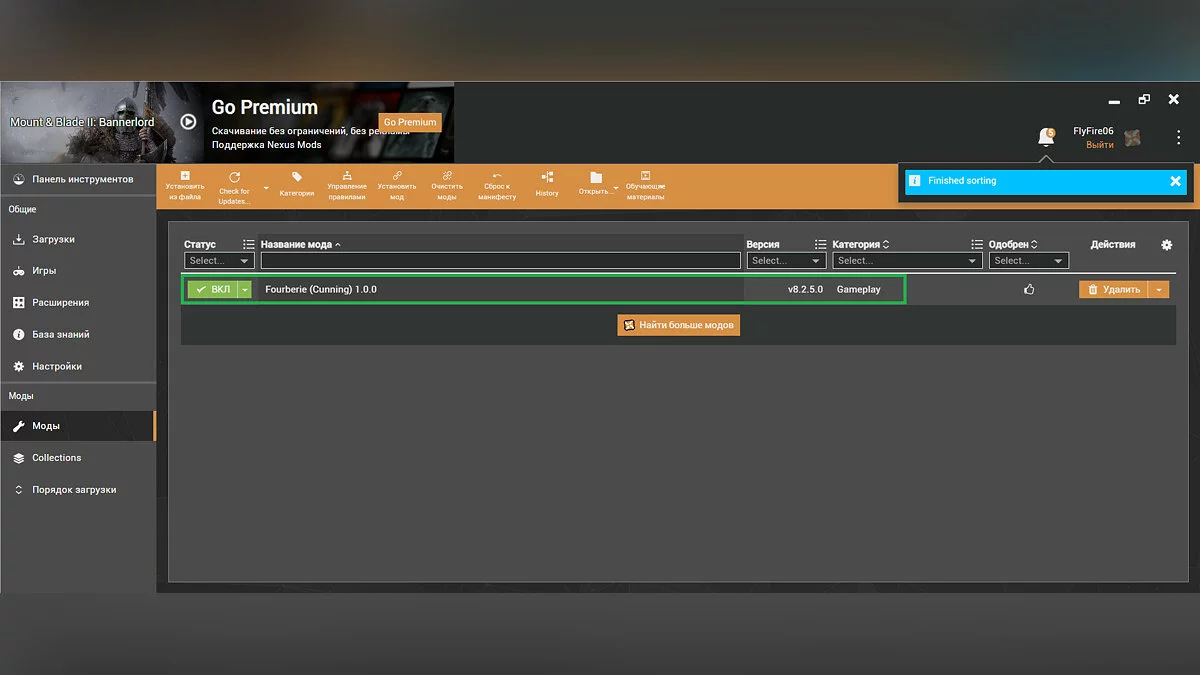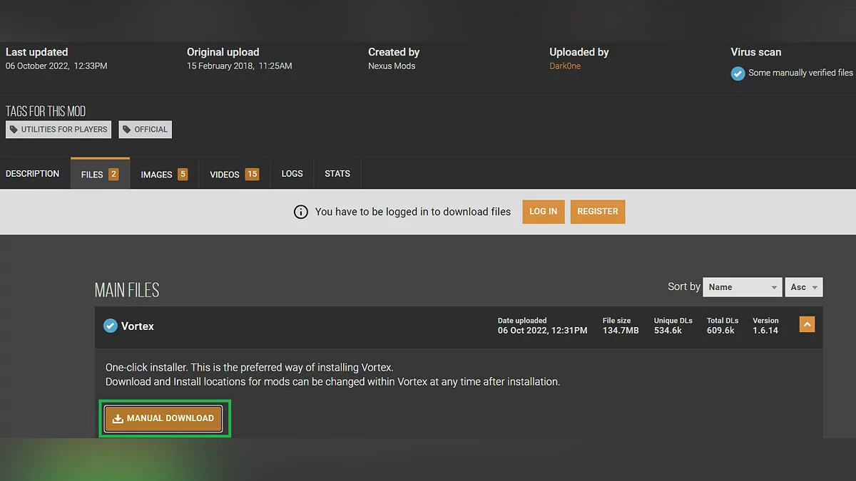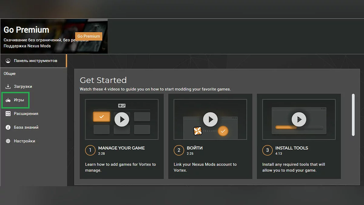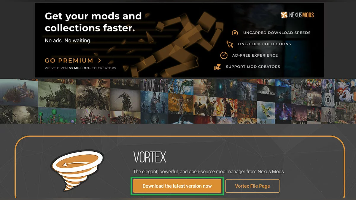 Vortex — это лаунчер модов, который позволяет в один клик устанавливать модификации, следить за наличием обновлений, отключать и удалять ненужные моды. Также мод-менеджер позволяет избегать ошибок, редактируя параметры запуска и расставляя моды в правильном порядке. Для его скачивания потребуется регистрация на сайте. Сам процесс установки модов выглядит так: