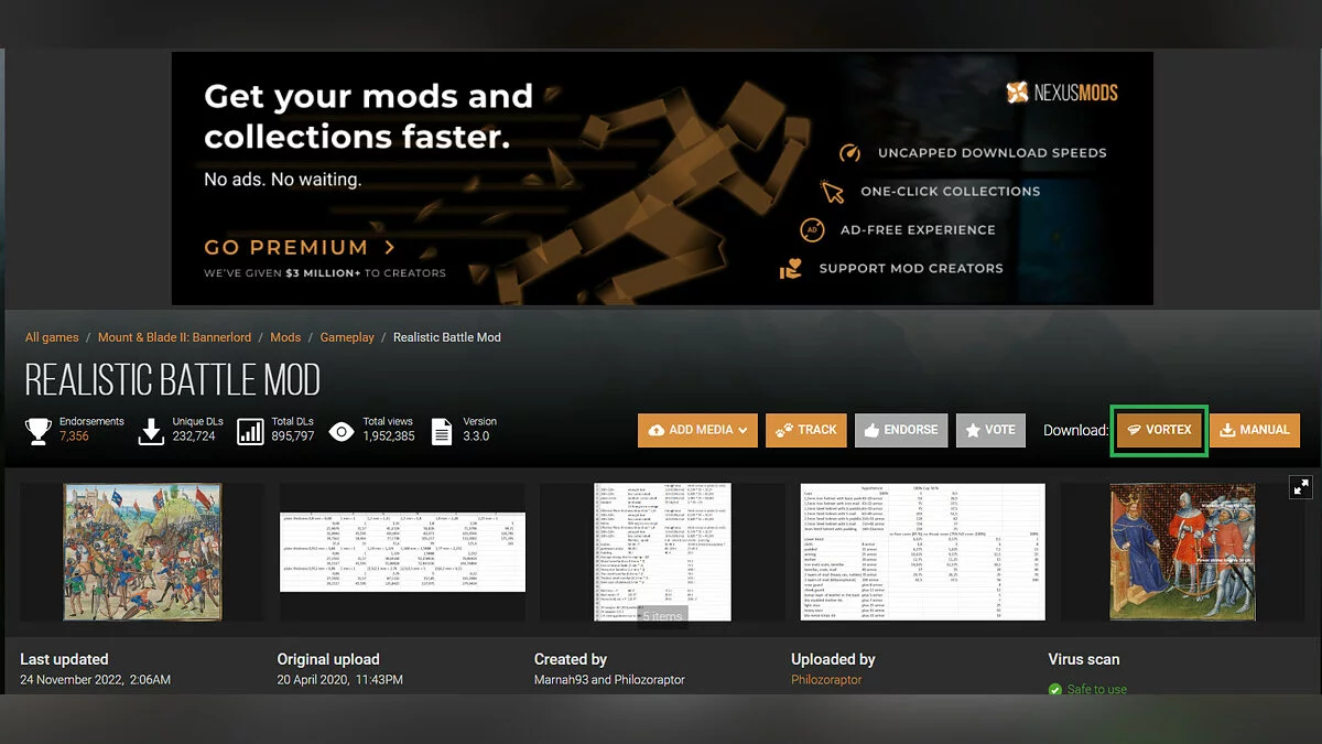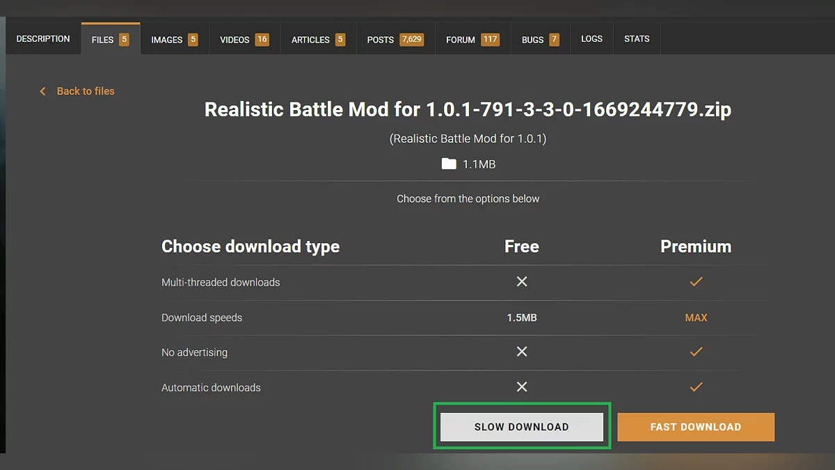 - Дальше необходимо перейти на сайт NexusMods, выбрать понравившийся мод и нажать на кнопку Vortex, после подтвердить загрузку нажатием на Slow download. Спустя нескольких секунд начнется автоматическая загрузка и установка модификации. Программа предупредит вас, если возникнут конфликты файлов, и предложит их решить.