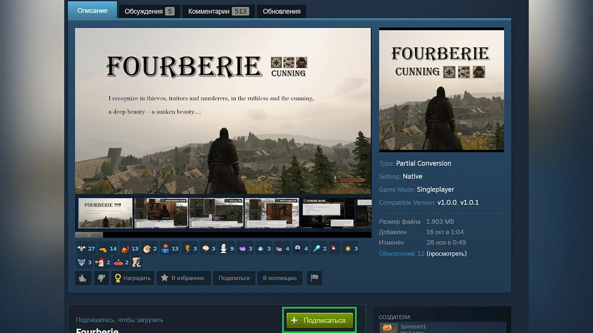 После скачивания игры достаточно перейти на страницу нужного мода в мастерской и нажать кнопку «Подписаться». Вскоре начнется скачивание и установка модификации, за процессом можно следить на вкладке «Загрузки».