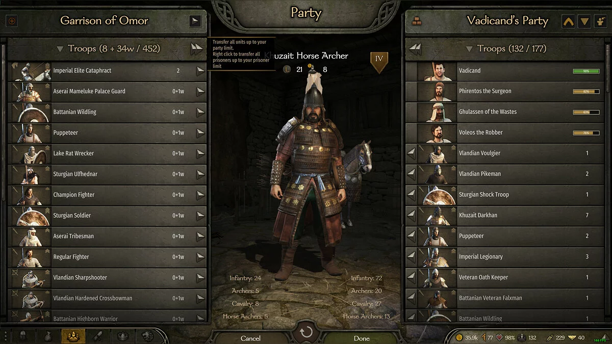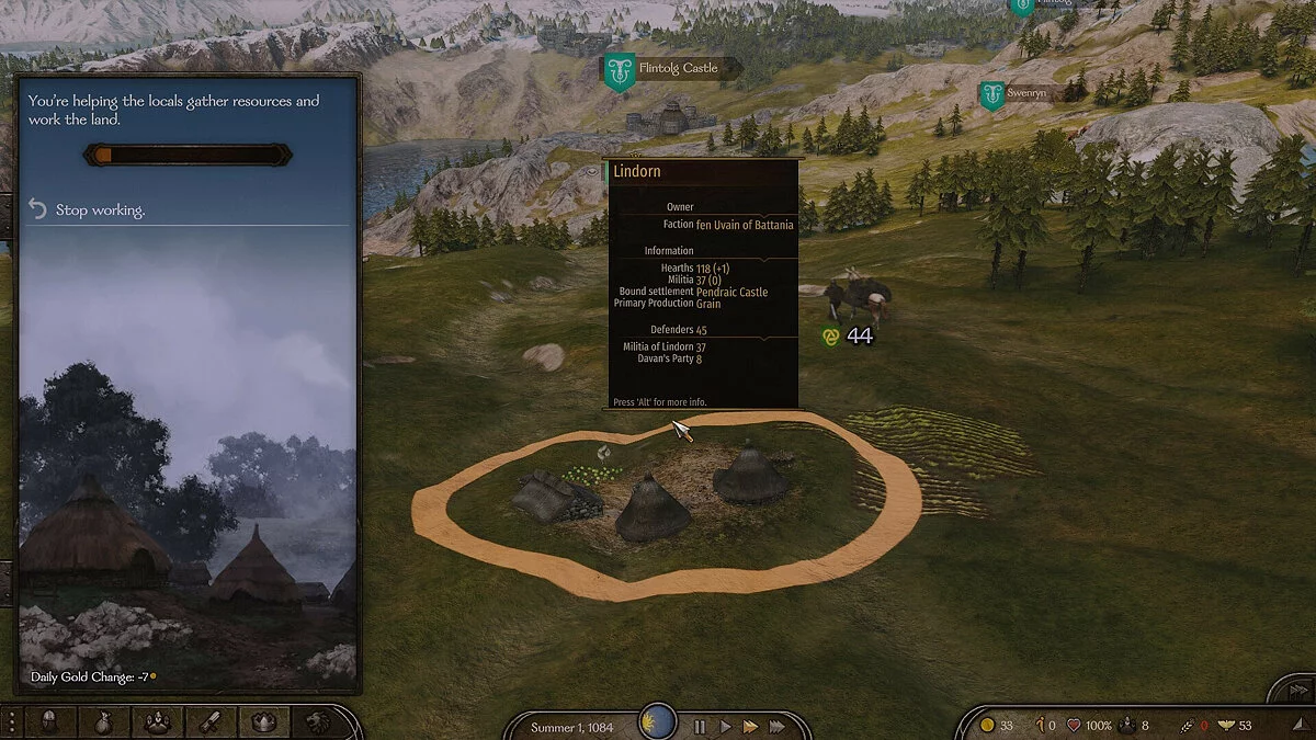 Причем кнопкой «Найми 100 солдат» дело не ограничилось: можно настроить количество и тип необходимых добровольцев, а также создать программу тренировок, по которой будет идти их дальнейшая подготовка. После завершения обучения отряды не бездумно бродят по землям, а имеют собственный ИИ, который решает, стоит вступать в сражение с возможным противником или лучше отступить, чтобы залечить старые раны. Также в моде доступна подробная статистика поселений и подчиненных отрядов.
