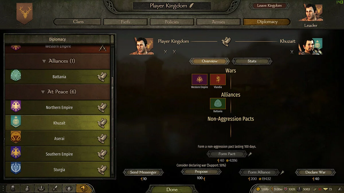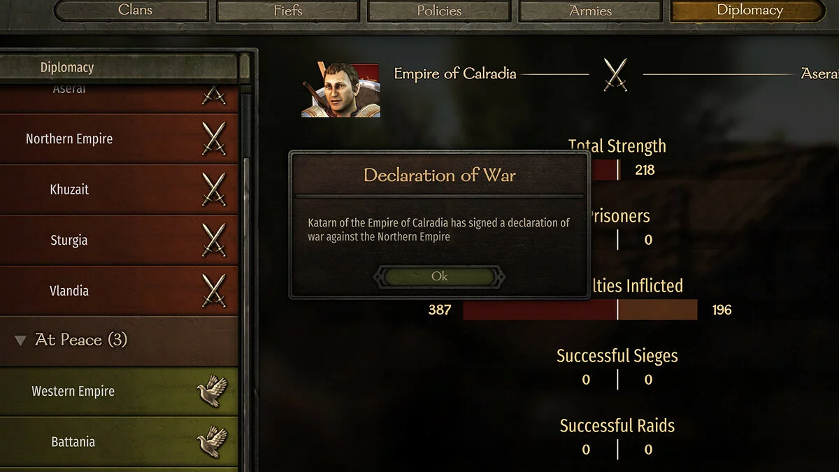 Diplomacy исправляет и значительно расширяет механики внутренней и внешней политики королевств. Игрок теперь может заключать альянсы, пакты о ненападении, брать вассалов, подкупать других лордов и использовать различные политические инструменты для победы над противником.