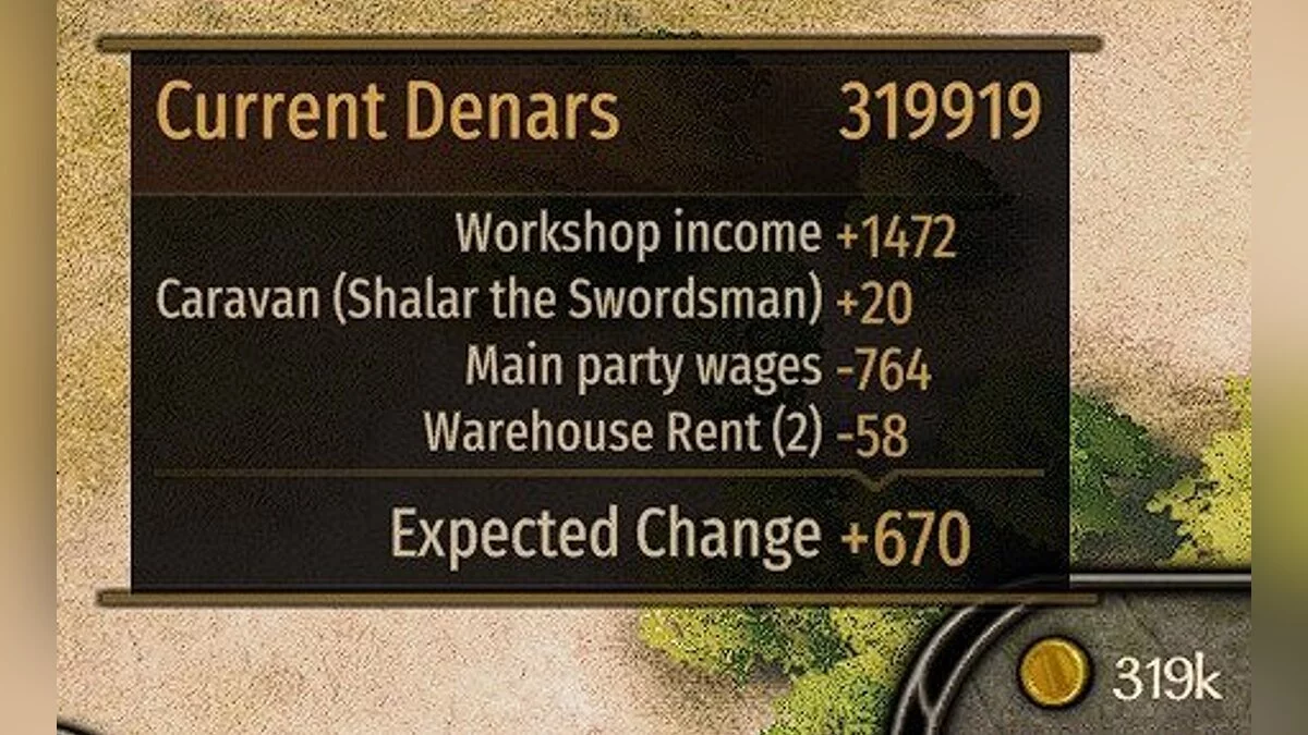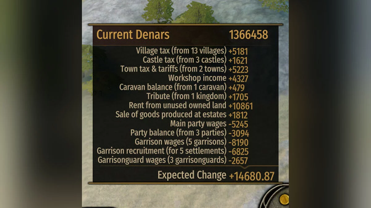 Sorted Income — небольшая модификация, изменяющая окно доходов. Теперь вместо длинного списка подконтрольных деревень игрока ждет одна строчка: «Доход с деревень (13 поселений): 2300». И так со всеми типами доходов и расходов. На поздних стадиях игры, когда список не влезает в экран, это особенно актуально.