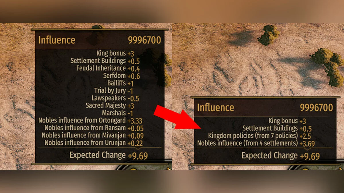 Появились механики усталости от войны, интерфейс дипломатии был значительно улучшен, а в различных фракциях теперь могут вспыхивать гражданские войны. Игрок даже может отречься от текущего королевства и основать своё.