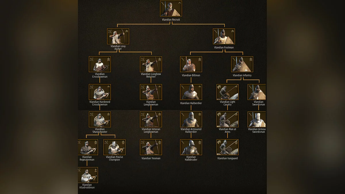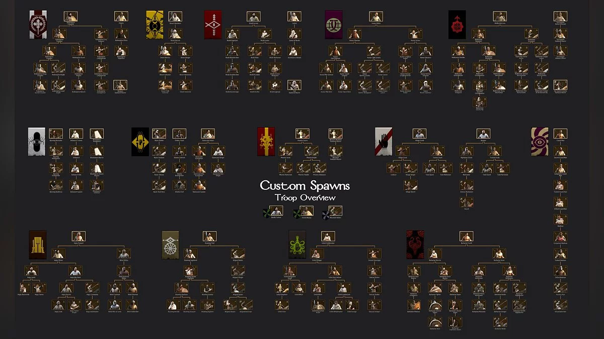 Древа прокачки войск были расширены новым оружием и доспехами, которые можно скрафтить, и сбалансированы для каждой фракции. Арбалеты сбалансированы относительно луков, ветка оружия дальнего боя в целом расширена, а выживаемость низкоуровневых бойцов повышена. Это, по словам автора, лишь малая часть правок, которые он внёс.