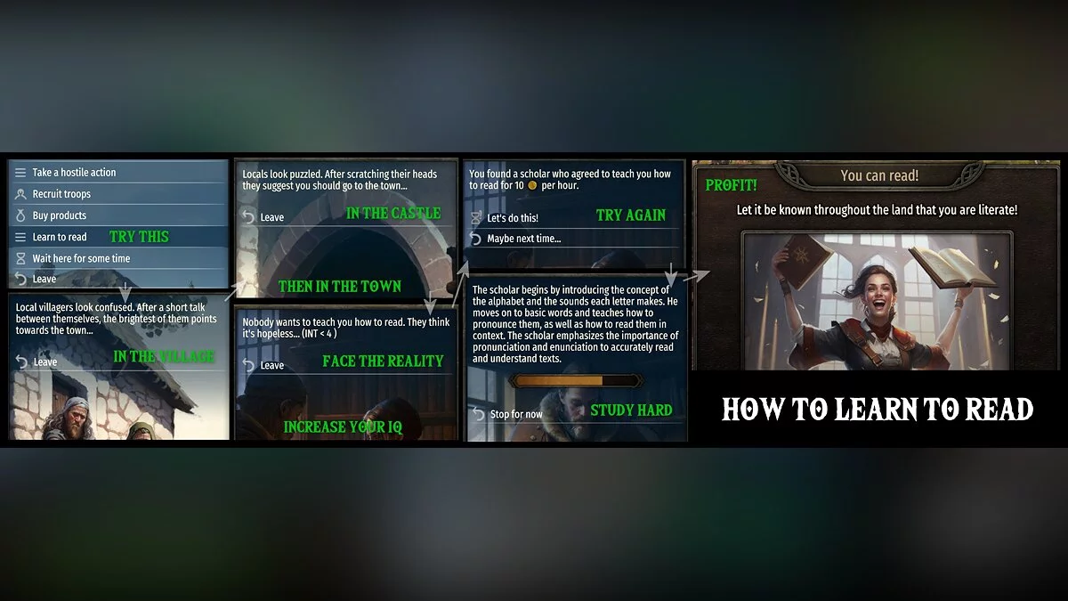 Получить эти знания не так-то просто — необходимо сначала научиться читать, затем отыскать продавцов книг и ученых, а также столкнуться с тем, что на первых порах учиться будет трудно. Но чем выше будет IQ вашего персонажа, тем быстрее он освоит различные навыки. И да, компаньоны тоже смогут использовать книги.