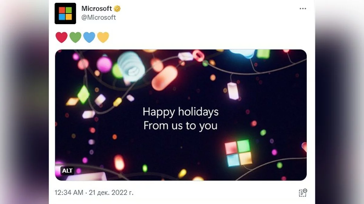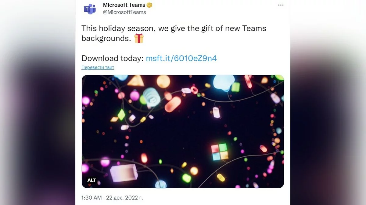 Microsoft тоже решила не отставать и сыграть на опережение: с Рождеством она поздравила аж 21 декабря простой картинкой. но вдобавок ещё и подарила фоны в Microsoft Teams.