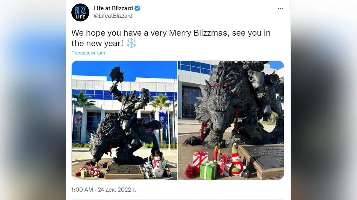 Самая зимняя студия под кодовым названием «Метелица», а именно Blizzard Entertainment, пожелала всем веселых Blizzmas и опубликовала фото из главного офиса, где метелью-то и не пахнет. Зато подарки есть!