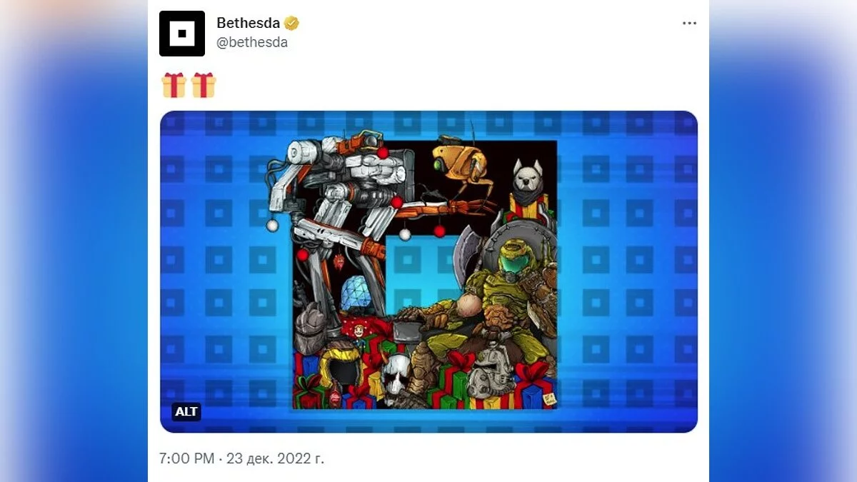 Официальный аккаунт Bethesda решил остаться немногословным: красивая открытка, два смайлика — и всё на том.