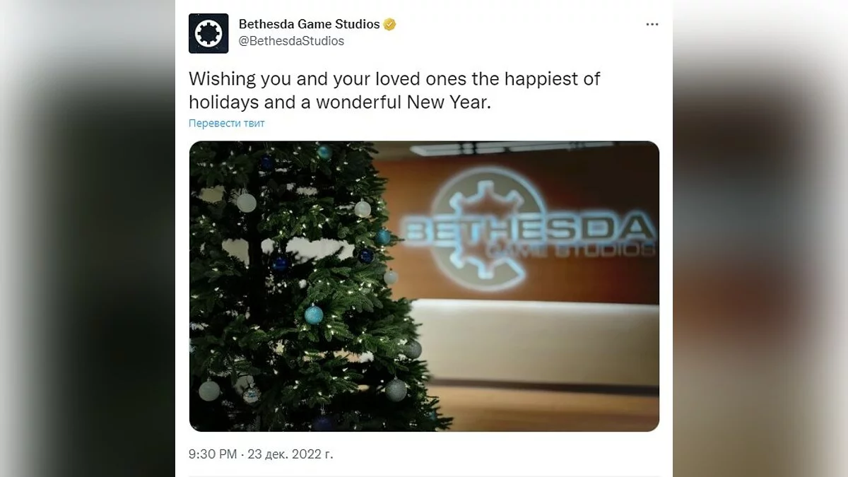 Их второй аккаунт, Bethesda Game Studios, поделился красивой елочкой из офиса.