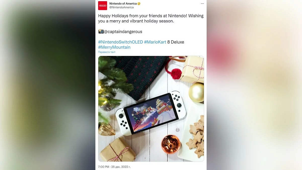 Nintendo поделилась милой новогодней фотографией с Nintendo Switch и пожелала веселого и яркого праздничного сезона.
