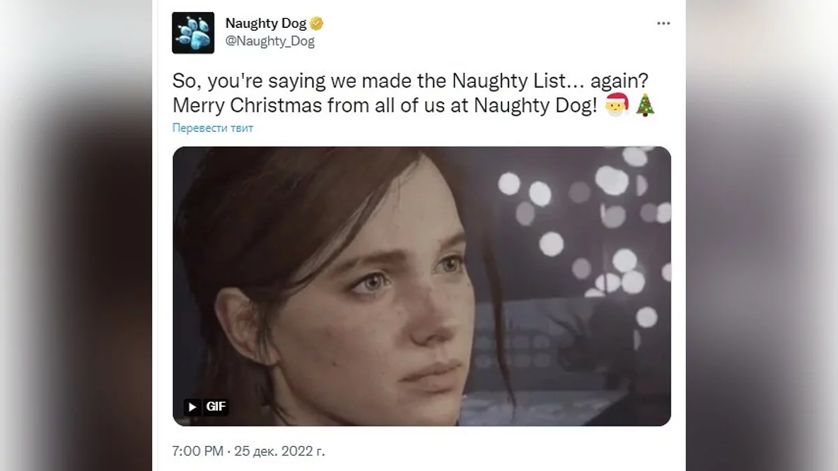 Чувство юмора Naughty Dog в этом году явно не растеряла, их поздравительный пост гласит: «Что, неужели мы попали в список непослушных… снова?», да ещё и прикрепила туда известнейший мем гифкой!