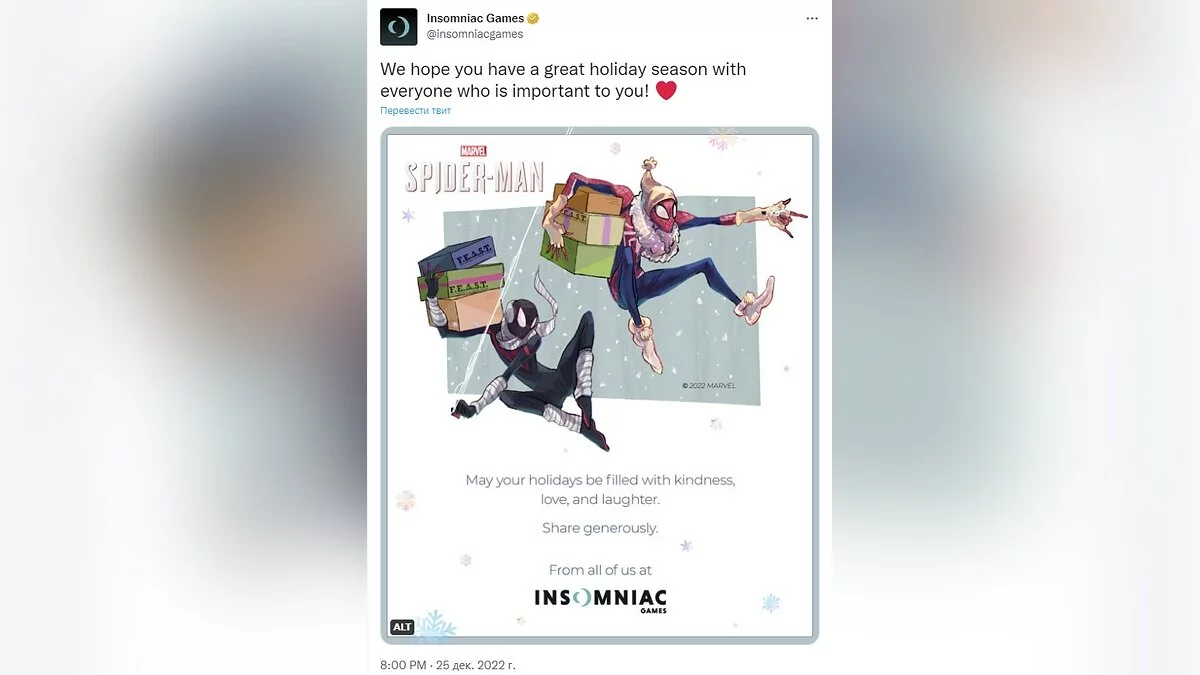 Insomniac Games поделилась с нами артом, показывающим, чем занимаются супергерои в праздники. И никакой Санта-Клаус не нужен!