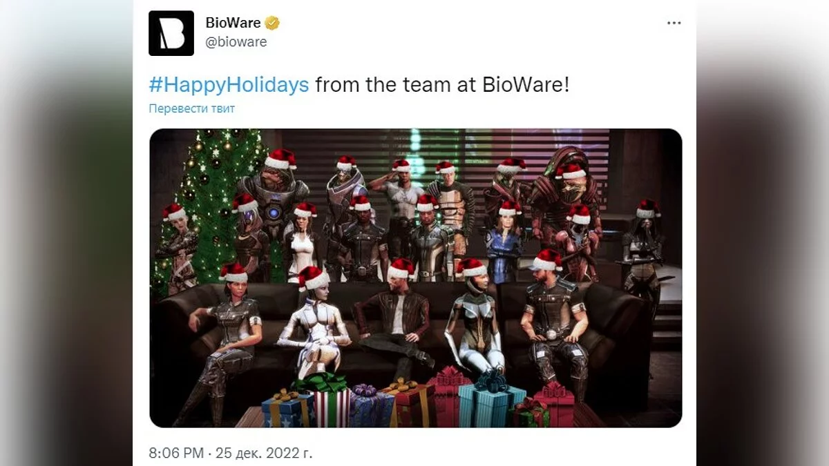 BioWare в своей открытке нарядила всех персонажей Mass Effect в новогодние колпаки. Ох уж эта праздничная мера!