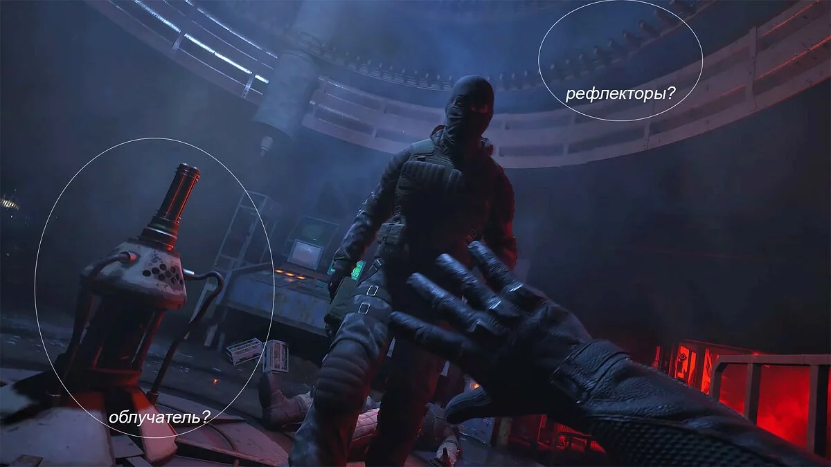 Мы поставим на контроллёра, поскольку разработчики уже публиковали скриншот (выше) с этим мутантом в похожем подземелье. Кстати, о возможной локации — такого помещения еще не было в трилогии: мощная вытяжка воздуха и странные кольца с «зубчиками» (рефлекторы-директоры?) по периметру, в центре комнаты что-то вроде облучателя. Может ли это быть лаборатория изучения Ноосферы, которая далее фигурирует в видео?