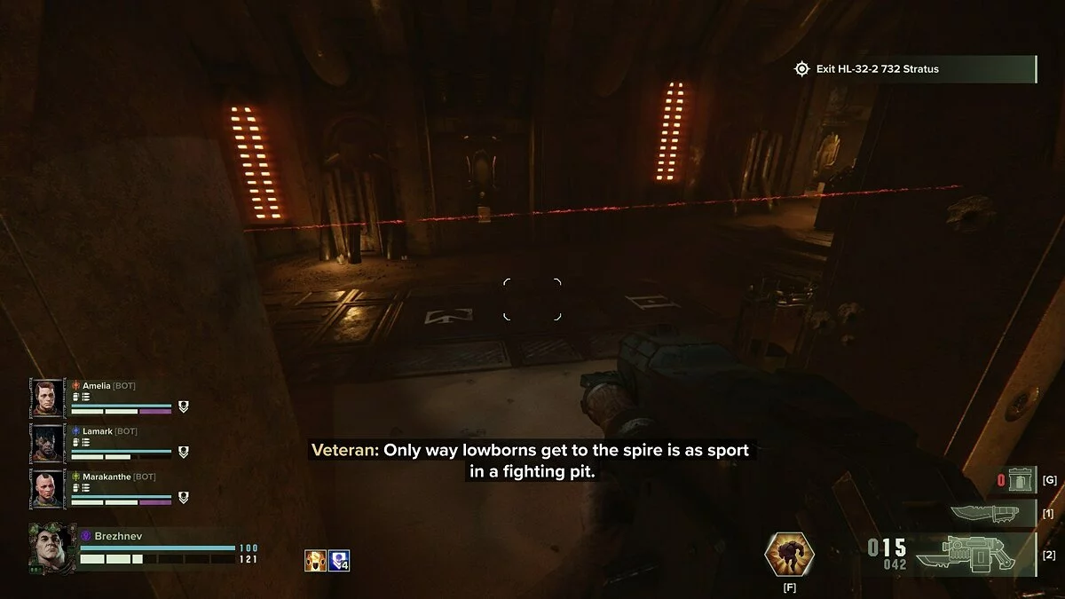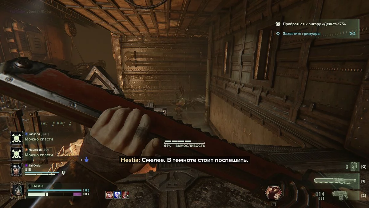 И эти диалоги действительно неплохо написаны. Игра учитывает выборы, сделанные командой из четырех человек, и составляет из них интересные перипетии между героями. Конечно, без изъянов в диалоговой системе не обошлось. Если на вечеринку заглянет несколько ботов, будьте готовы слушать одинаковые изречения — Darktide не пытается рандомизировать предыстории для заготовленных заранее компьютерных болванчиков.